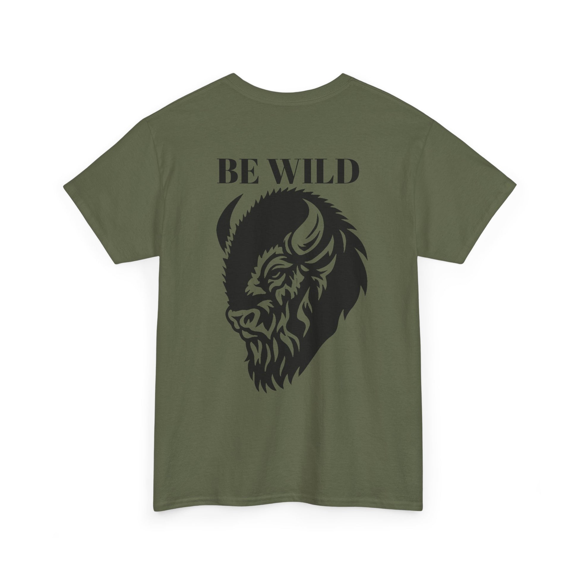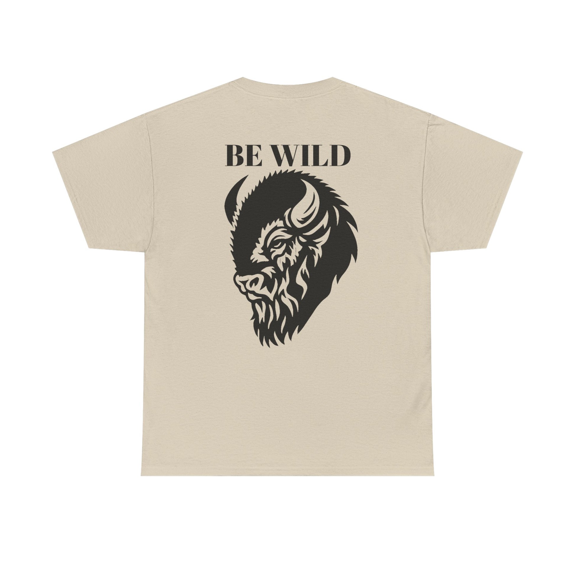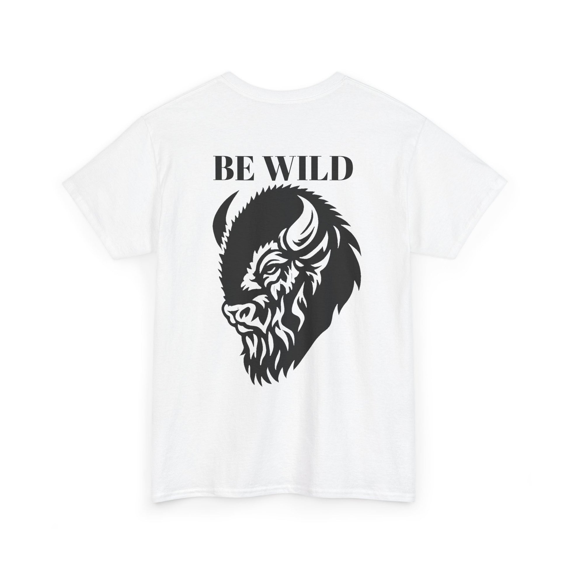 Be Wild Buffalo T‑Shirt — Minimal Chest Logo & Bold Back Graphic